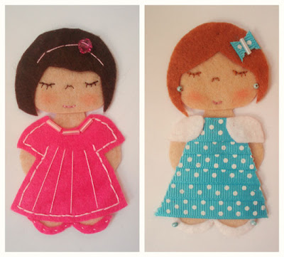 Empecé a investigar en blogs, y decidí crear un broche muñeca. Quería que fuera original y no se pareciera ninguna, he visto de todo, y muchas de ellas son iguales. Hasta que después de estropear muchos folios, salió un primer boceto y lo plasmé en fieltro. Enseñé mis primeros broches a familiares y amigos.