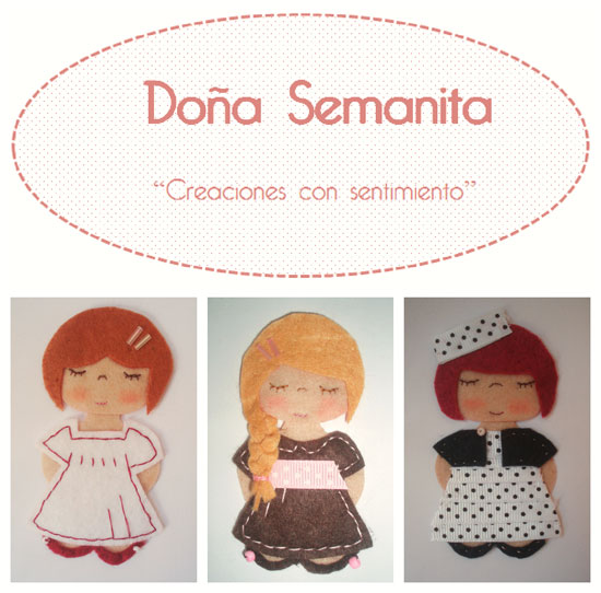 Ya bueno sólo me quedaba dar un nombre a mis creaciones y en especial a mis broches-muñecas. Y como no podía ser de otra forma, otra vez mi hija la mayor me dio la idea. Un día se presento en casa cantando la canción de “Doña Semanita”, y pensé,