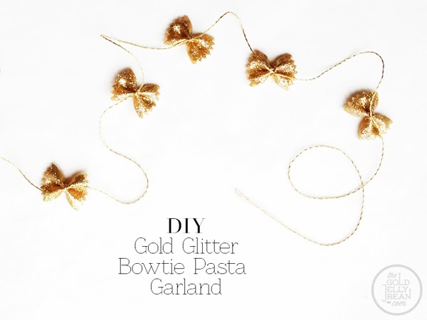 Hoy os traemos un DIY facilísimo ideal para decorar la casa estos dias de fiesta; una guirnalda de pasta con purpurina dorada, muy navideña.